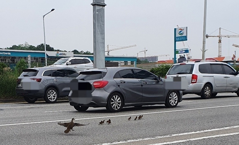 강변북로에서 운전을 하던 지혜영씨는 "갑자기 차량이 정체 현상을 빚어 교통사고가 난 줄 알았는데 도로 한복판에 어미새와 병아리들이 길을 건너고 있었다"며 "당시 이 구간을 지나던 다른 차들이 서행 운전을 하며 새들이 안전하게 도로를 건널 수 있도록 했다"고 말했다. (글 = 노승혁 기자, 사진 = 지혜영 씨 제공)