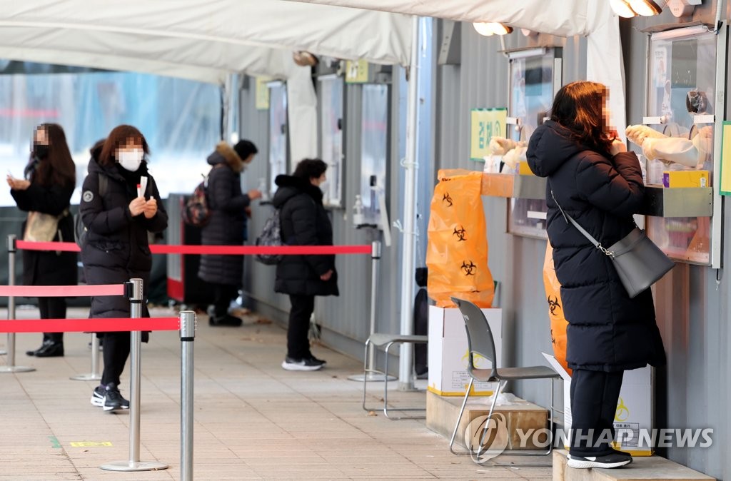 | ▲ People take COVID-19 tests at a testing site near Seoul City Hall in Seoul on Jan. 15, 2022. (Yonhap) |