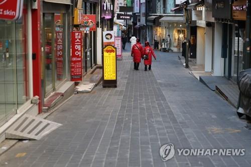 ▲ A street in Seoul's Myeong-dong remains empty on Jan. 11, 2022, amid toughened social distancing rules. (Yonhap)