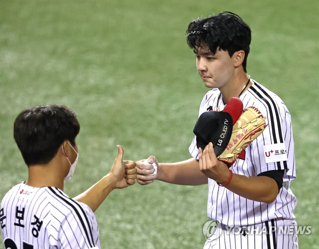 | ▲ 6회 마친 이민호 (서울=연합뉴스) 류영석 기자 = 10일 서울 잠실야구장에서 열린 2021 KBO리그 한화 이글스와 LG 트윈스의 경기. LG 선발 투수 이민호가 6회초를 무실점으로 마친 뒤 더그아웃으로 향하고 있다. 2021.9.10 ondol@yna.co.kr |