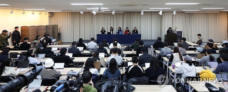 | ▲ 뉴진스, 전속계약 해지 관련 기자회견 (서울=연합뉴스) 김성민 기자 = 걸그룹 뉴진스가 28일 오후 서울 강남구 스페이스쉐어 삼성역센터에서 열린 전속계약 해지 관련 기자회견에 참석해 있다. 왼쪽부터 해린, 다니엘, 민지, 하니, 혜인. 2024.11.28 [공동취재] ksm7976@yna.co.kr |