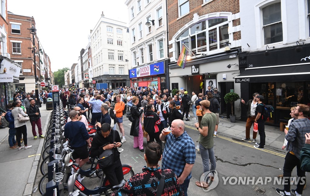 | ▲ 작년 7월 펍 야외에 모인 영국인들 [EPA=연합뉴스 자료사진] |