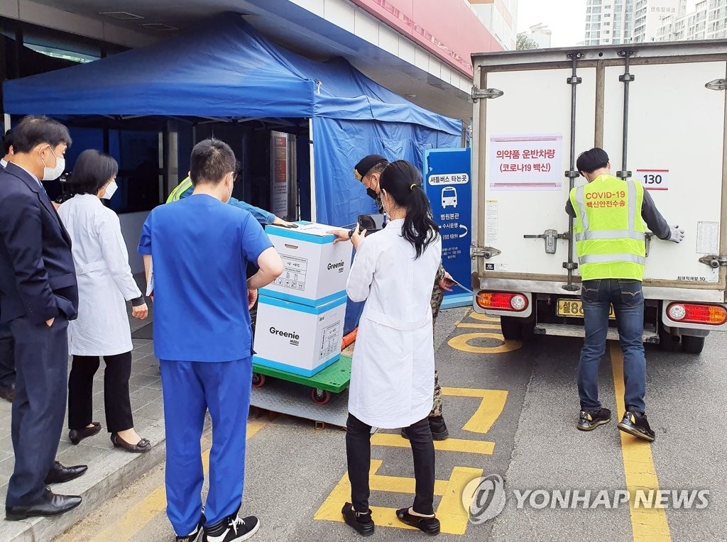 ▲ Hospital workers transport Pfizer's vaccines to a freezer at Chungnam National University hospital in Daejeon, 164 kilometers south of Seoul. (PHOTO NOT FOR SALE) (Yonhap)