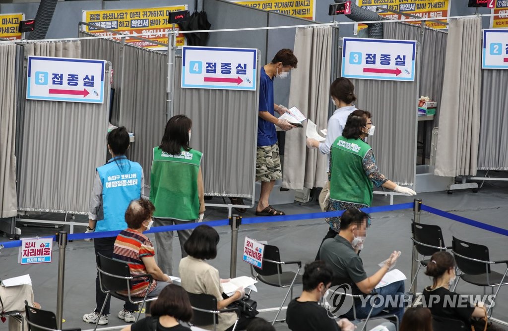 | ▲ People wait to get vaccinated at a vaccine site in Seoul on Aug. 27, 2021. (Yonhap) |