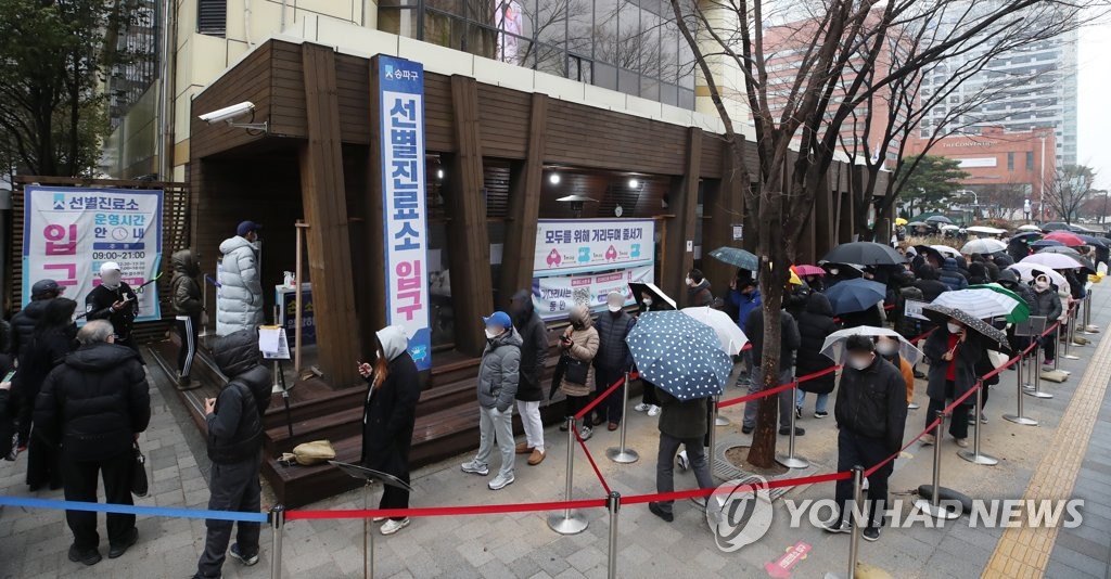 | ▲ People wait in line for COVID-19 tests at a testing station in Seoul's eastern district of Songpa, on Dec. 15, 2021. (Yonhap) |