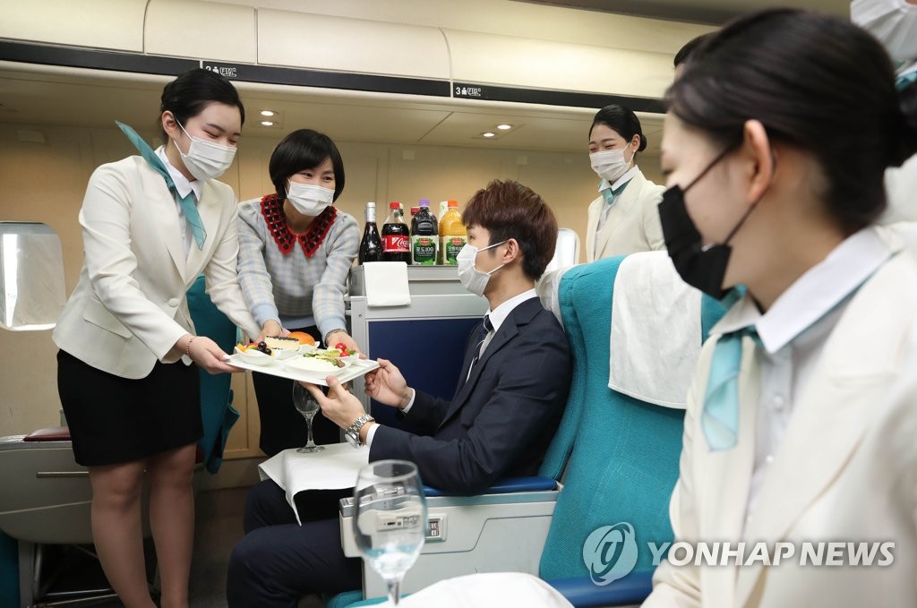 ▲ Masked students take part in an airline service class at Yeungjin University in Daegu, 302 kilometers southeast of Seoul, on March 11, 2021. (Yonhap)