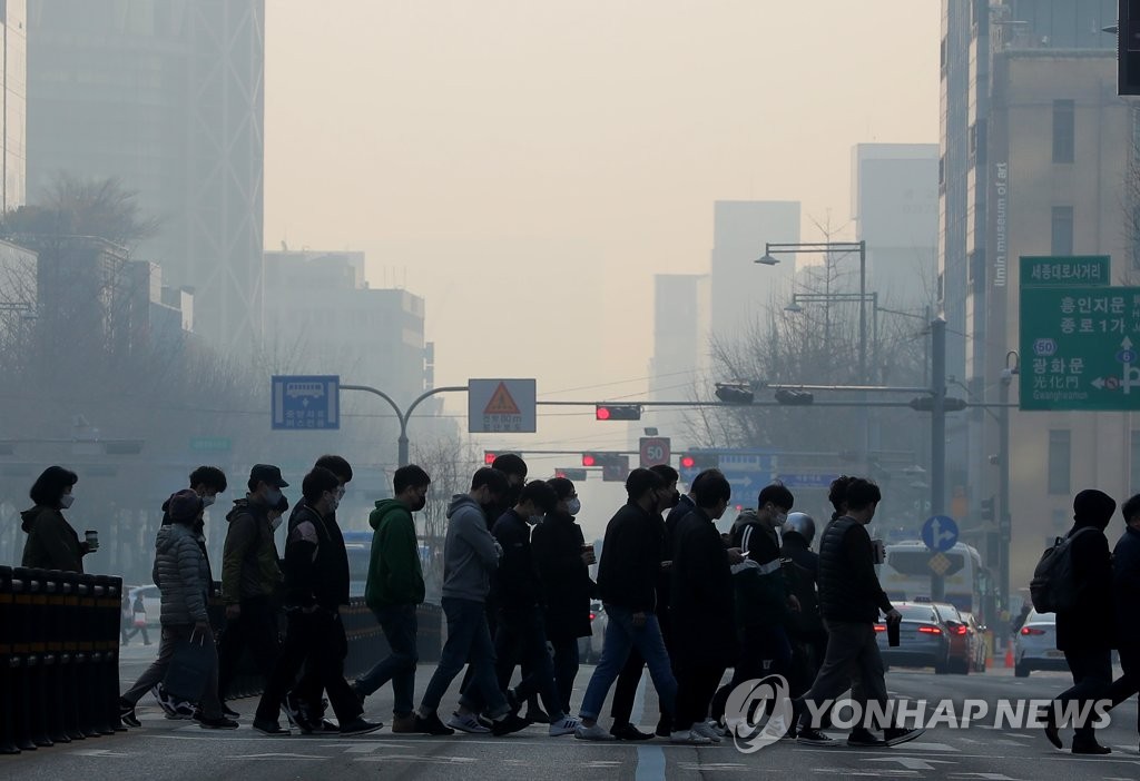 ▲ Masked people walk across a street in central Seoul during morning commute hours on March 11, 2021. (Yonhap)
