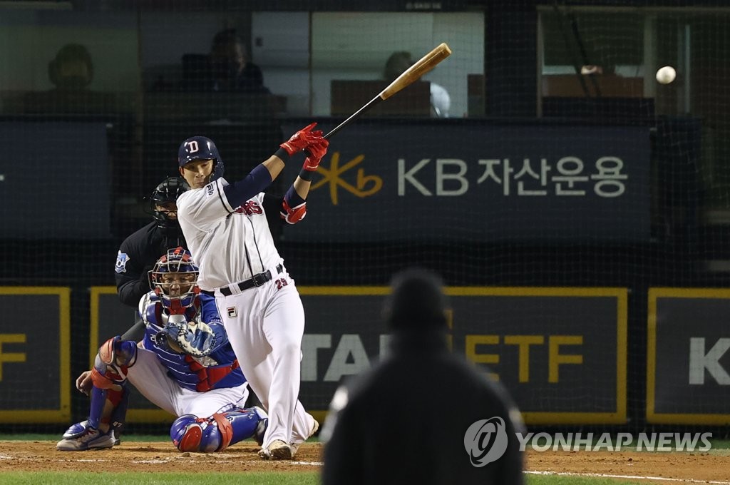 Yang Suk-hwan's two-out single in the seventh made it 11-1 for the Bears.