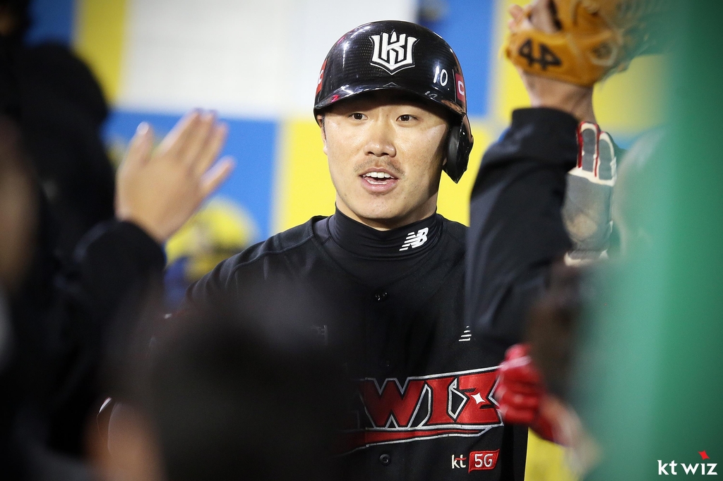 그는 "(오)윤석이는 작년까지 같이 있었고, (황)재균이형도 마찬가지다. 한번은 (배)제성과 포수 장성우형에 바뀐 투수로 (박)시영이가 올라오더라. kt인지 롯데인지 헷갈릴 정도였다"고 웃으며 말했다.