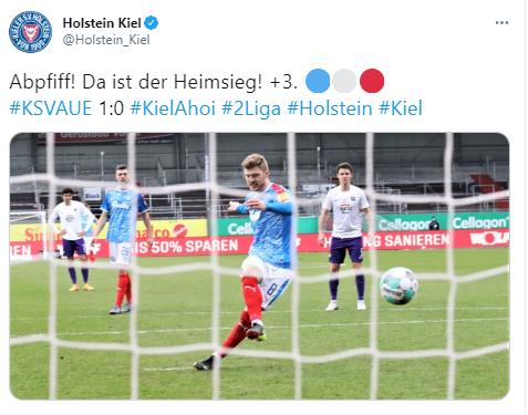 결국 킬은 후반 34분 페널티지역 왼쪽으로 파고들던 핀 포라스가 페널티킥을 유도했고, 후반 36분 페널티킥 키커로 나선 알렉산더 뮐링이 결승골을 뽑아내며 1-0 승리를 확정했다.