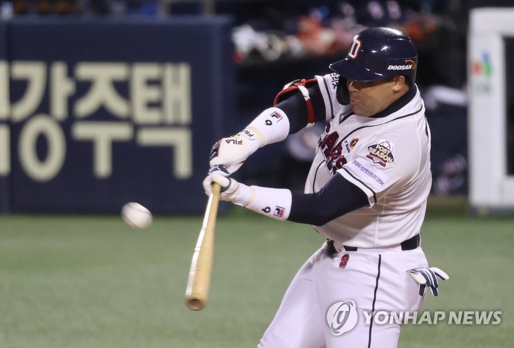 The veritable hitting machine from Cuba went 4-for-5 with three RBIs Wednesday, as the Bears routed the Lions 11-3 at Jamsil Baseball Stadium to sweep the best-of-three penultimate round in the Korea Baseball Organization (KBO) postseason.
