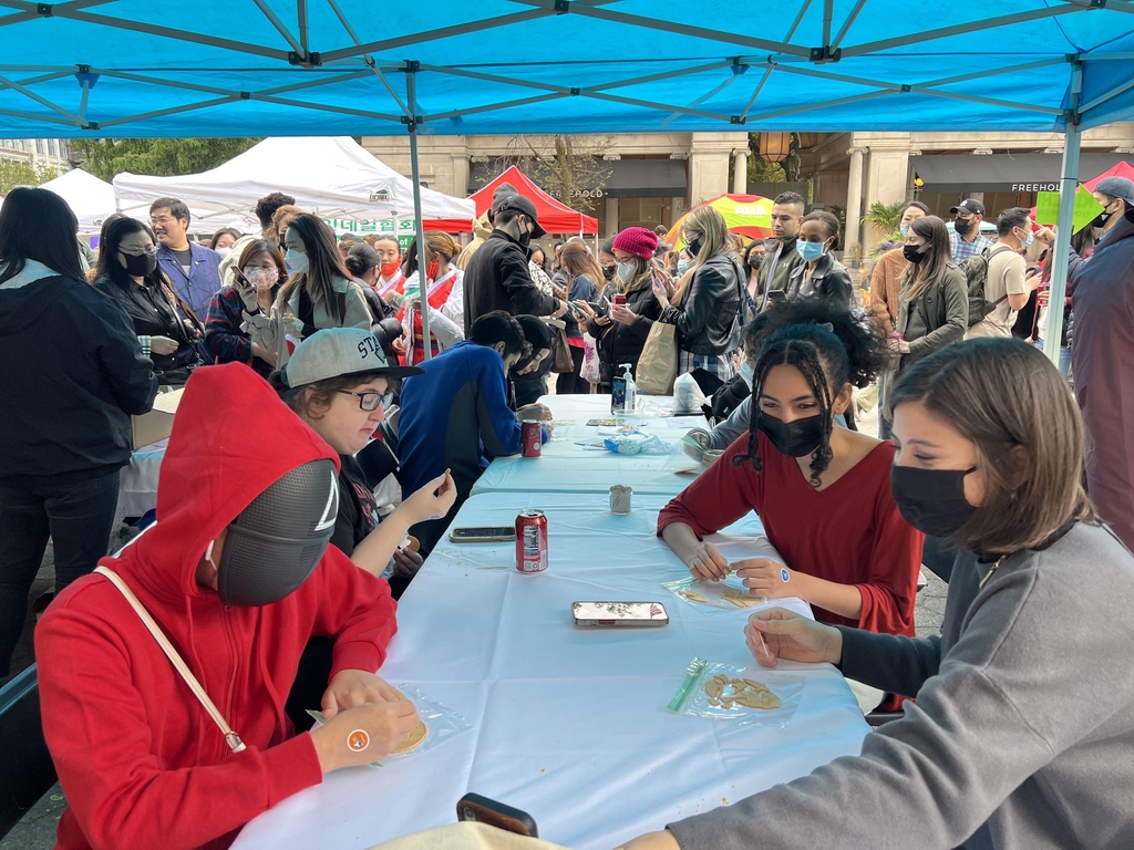 24일(현지시간) 뉴욕 유니언스퀘어에서 뉴욕한인회 주최로 열린 '2021 코리안 페스티벌'에는 온종일 '오징어 게임' 팬들과 현지 주민들이 몰려들어 드라마 속 게임과 다양한 한국 문화를 직접 체험했다.